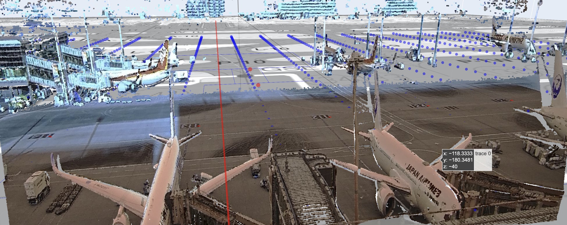 カメラの映像をもとに、空港制限区域をリアルタイムで3Dモデル化します。