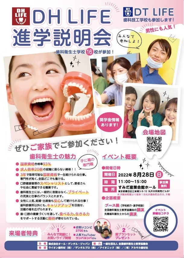 歯科衛生士になりたい中学生・高校生集まれ!歯科衛生士学校・歯科技工士学校含め15校以上が参加する進学説明会が【2022年8月28日(日) 丸井錦糸町店8階】にて開催します!参加費無料!