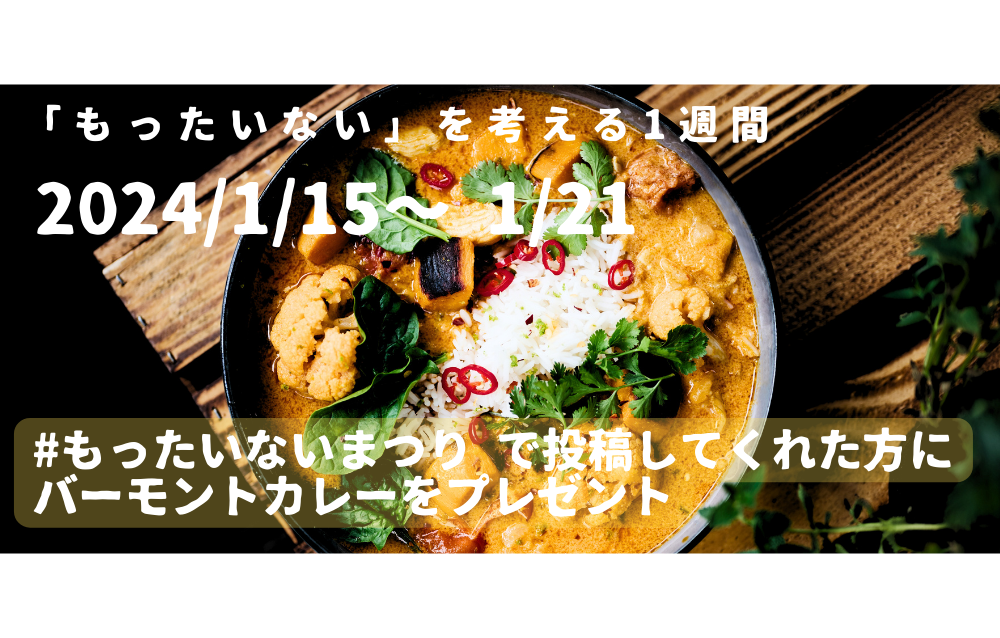 ハッシュタグキャンペーンとして、#もったいないまつり をつけて食品ロスをなくすためのアクションをSNS(X (旧Twitter)Instagram)で投稿してくれた方でイベントに来場した方にはバーモントカレーをプレゼントします。