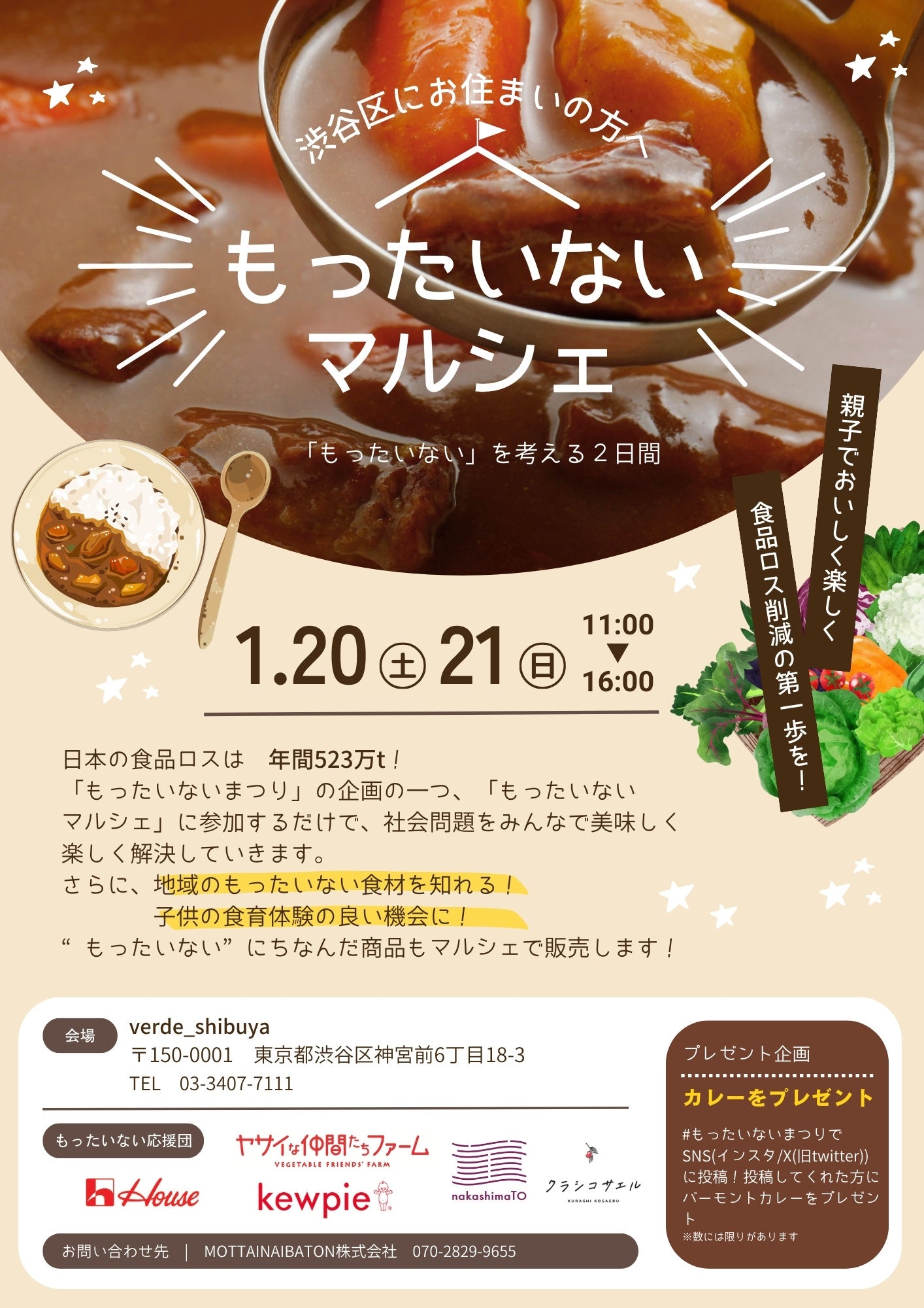 みんな集まれ!カレーの力でもったいないを考える1週間『もったいないまつり@しぶや』1月15日(月)から21日(日)まで開催