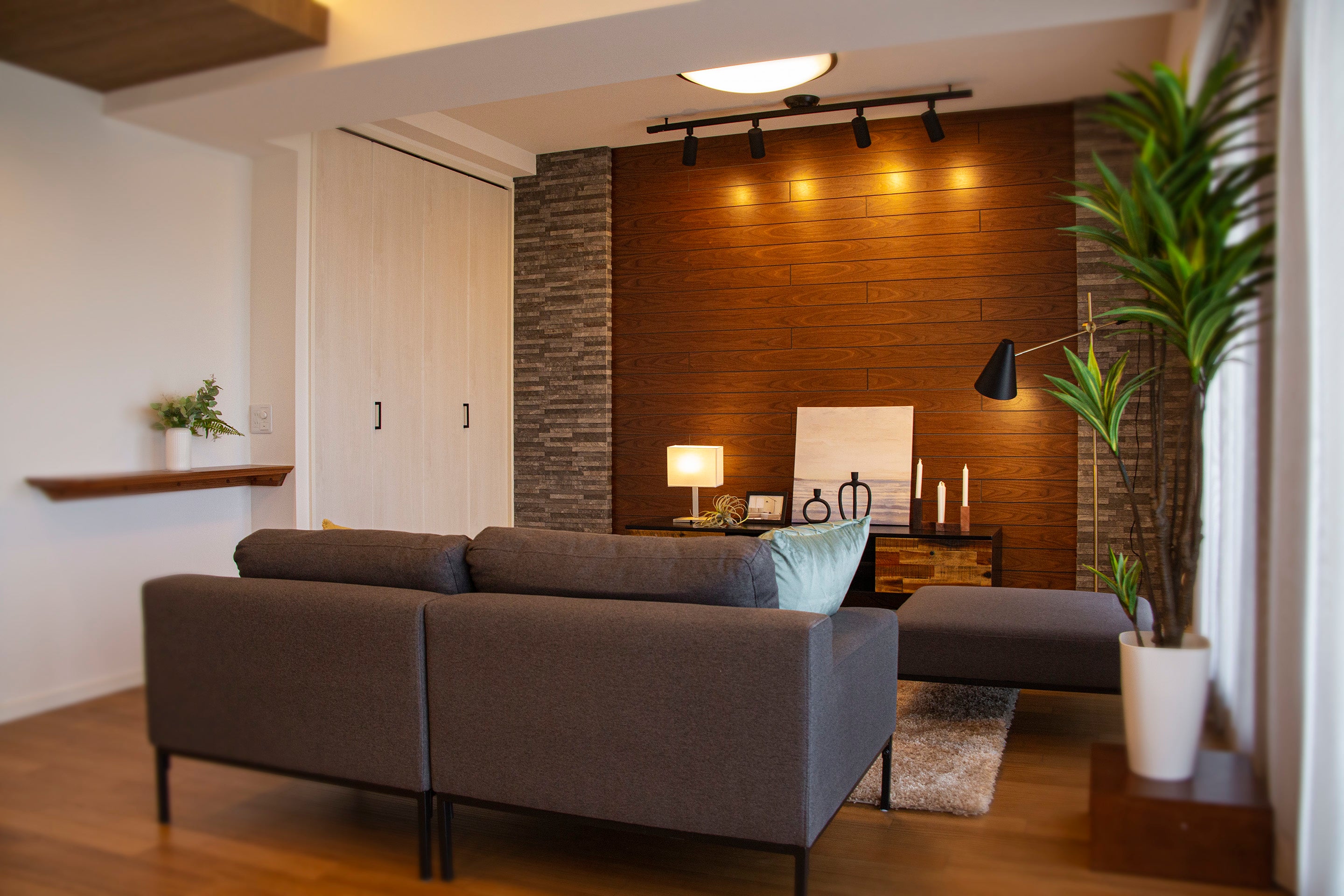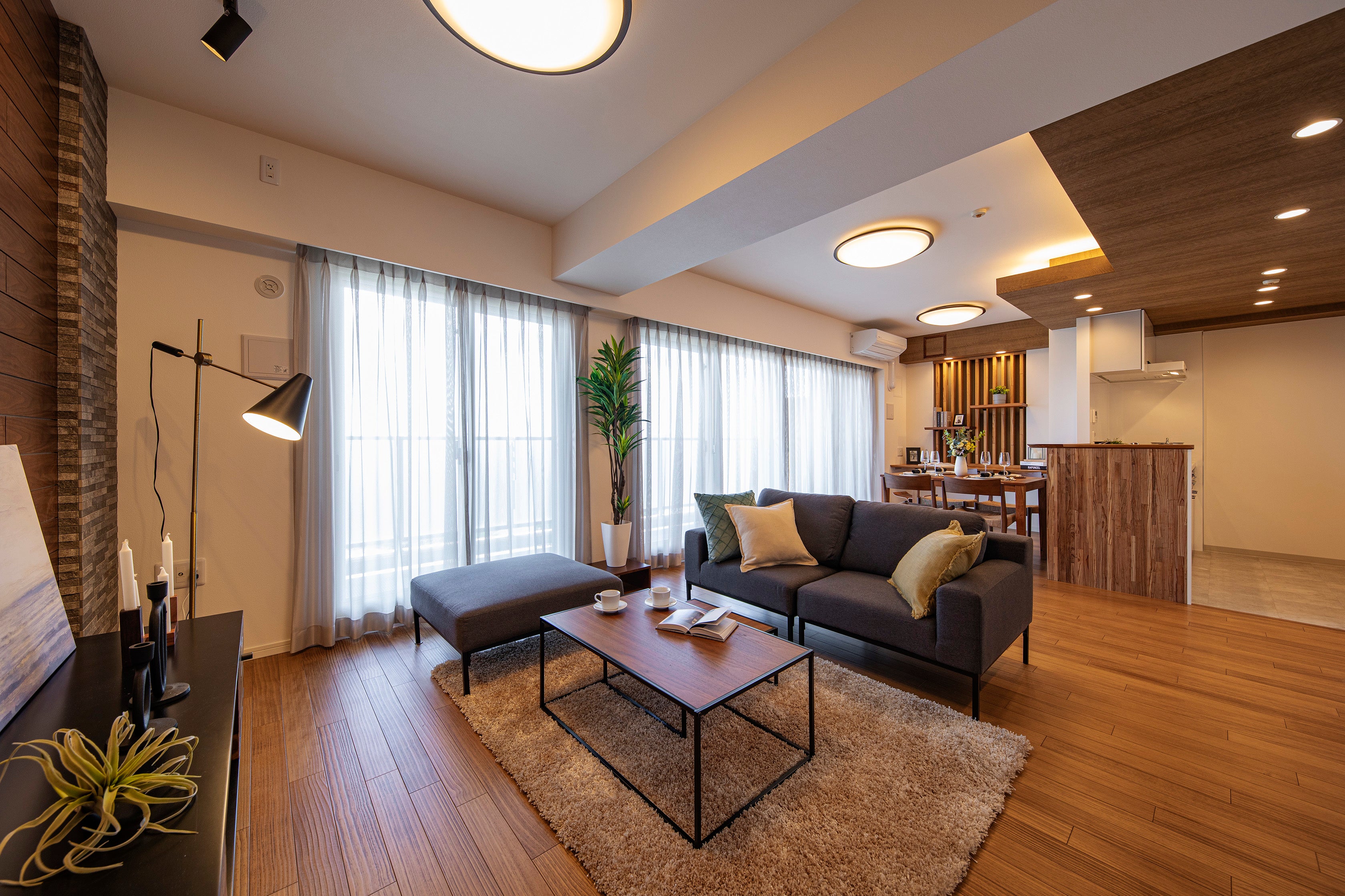 本リノベーション工事は、中古マンションの内装に木材をふんだんに用いることで、新たな空間へ生まれ変わらせる「木質化リノベーションパッケージ」の先駆けとして具現化したものとなっており、再販価値の向上を図っております。