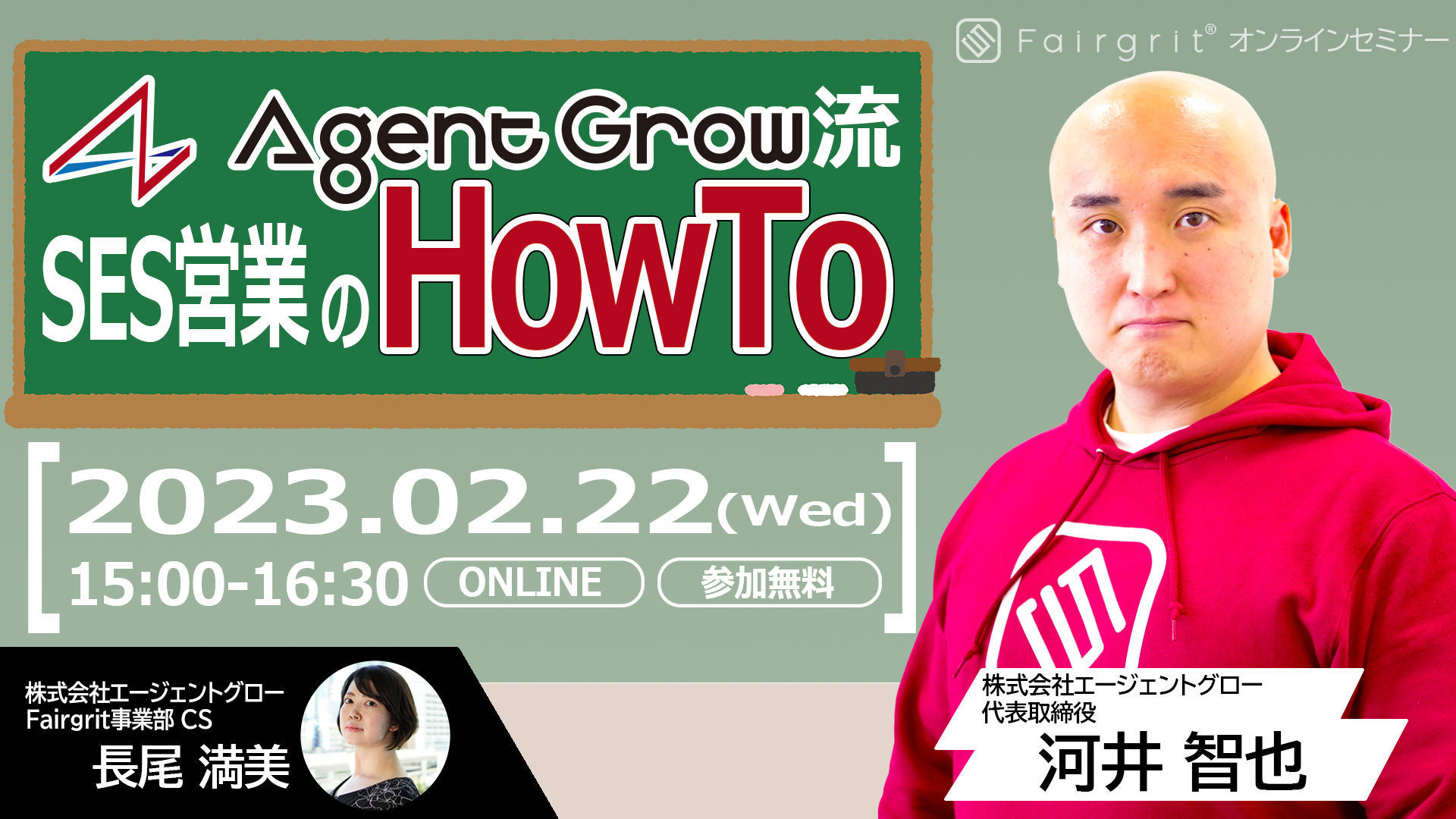 株式会社エージェントグロー(本社:東京都港区、代表取締役:河井智也/以下、「当社」)が毎月開催しているSES企業様を対象にした無料オンラインウェビナーにつきまして、2023年2月度の開催内容と日程が決定いたしました。