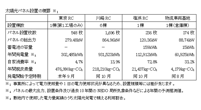 なお、本件実施にあたっては、東京都の「地産地消型再エネ増強プロジェクト」からの助成を受けることが決定しております。今後も、他の事業所への太陽光パネル設置等も含め、グループを挙げてグリーン電力導入に取り組み、中期経営計画で定めた「2026年を目途とした自社使用電力におけるカーボンニュートラル達成」を目指してまいります。