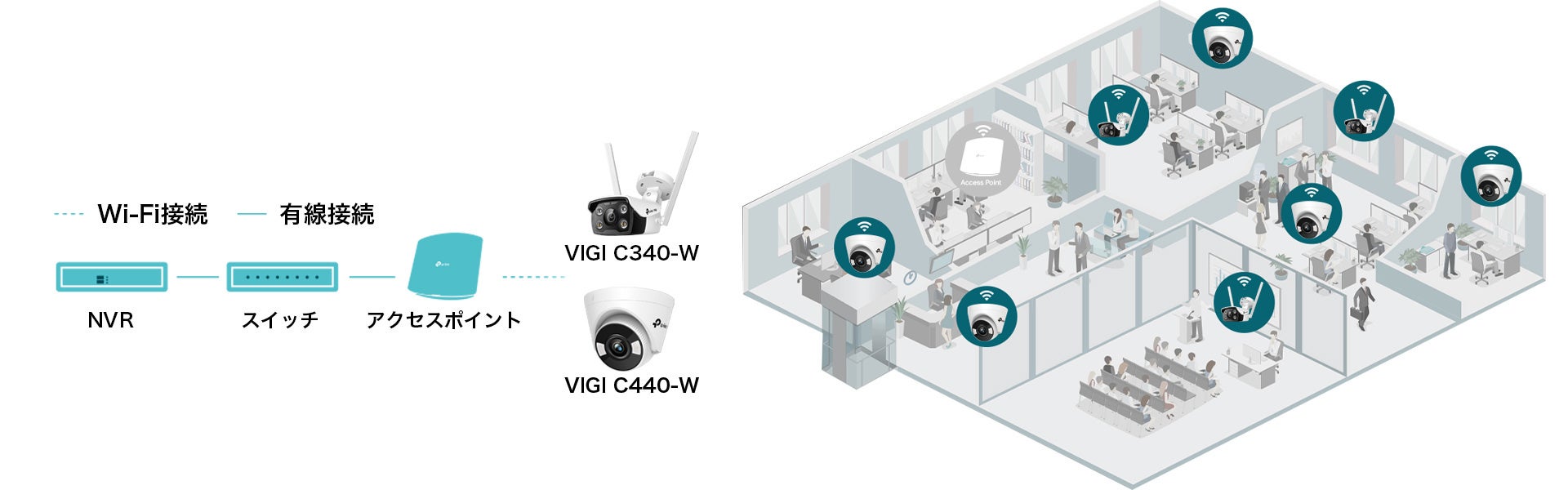 また、「VIGI C340-W」と「VIGI C440-W」はVIGIシリーズ初となるWi-Fi接続に対応。配線の手間やコストに囚われない、より手軽な展開をサポートします。