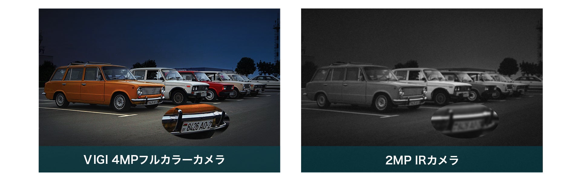 細かなディテールまで撮影できる4メガピクセルに対応。さらに、感度センサーと内蔵のスポットライトLEDにより、真っ暗な環境でも24時間フルカラーで監視し、被写体をいつでも鮮明に細部まで映し出します。