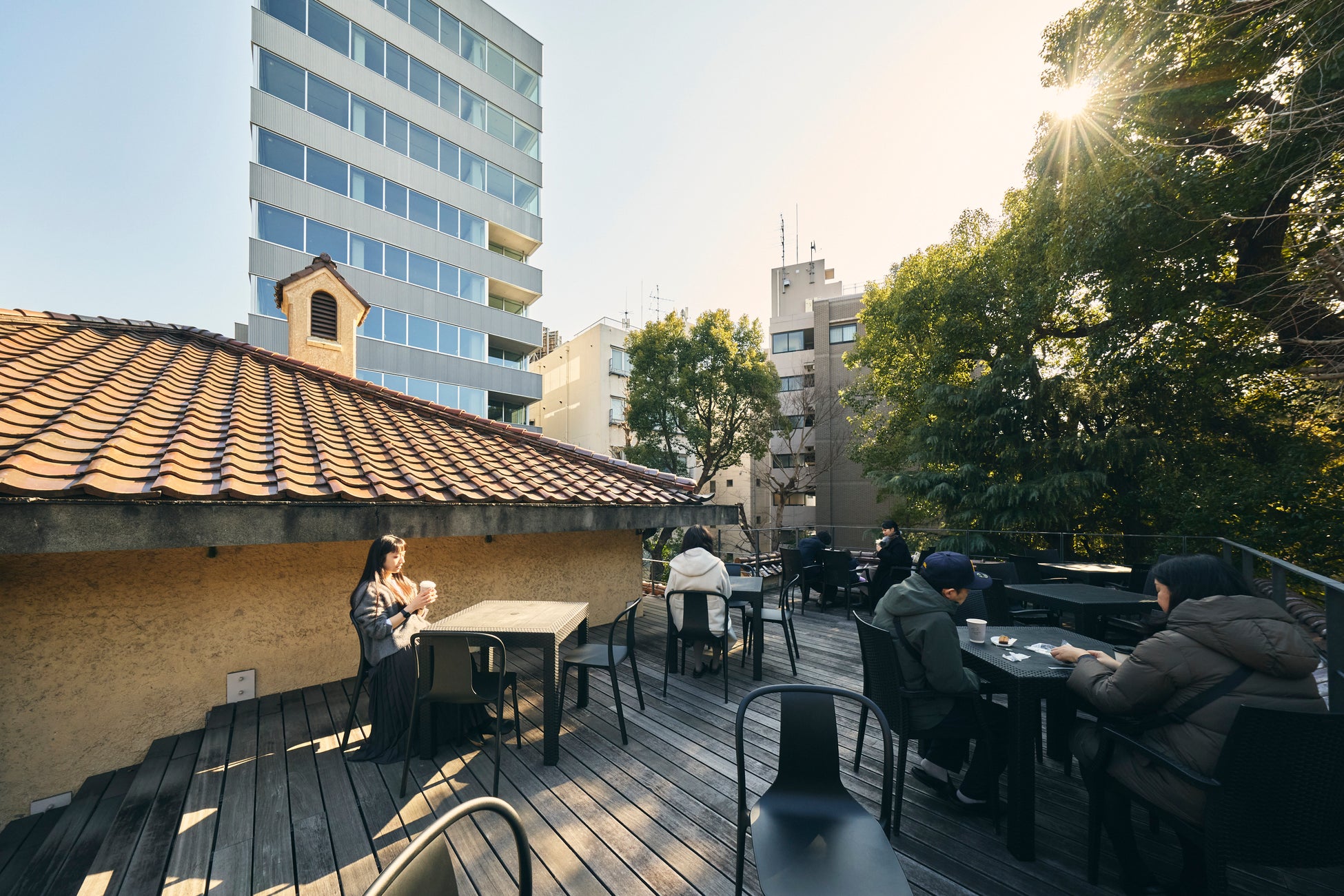 鑑賞の合間には、普段は非公開の邸宅の3階バルコニーを開放した「期間限定カフェ」で特別なひとときをお過ごしいただけます。 スパニッシュ様式の瓦屋根やアーチ窓、そして眼下に広がる庭園の緑を眺めながら、コーヒーやドリンクを楽しめる贅沢な空間です。歴史の重みや作品の思考に触れた後、心地よい風に吹かれながら展覧会の余韻(あいまいさ)に浸る、ここだけの時間をご提供します。