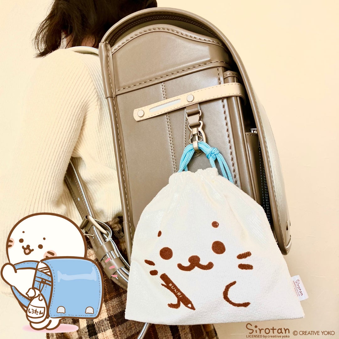 給食袋や文房具入れに使える「しろたん」デザインの巾着です。