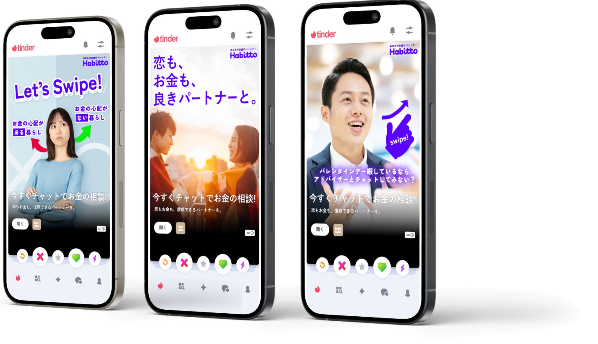 株式会社Habittoは、2024年2月14日にバレンタイン特別デジタル広告キャンペーン「恋も、お金も、良きパートナーと」をTinderなどのマッチングアプリに配信します。本広告を通じて、「バレンタインデーに恋愛のパートナー探しをしている全国の皆さまに向けて、恋人探しも大事だけれど、人生において恋愛と同じくらい大切な資産形成のパートナーをみつけてみませんか?」という、Habittoからの提案をお届けします。