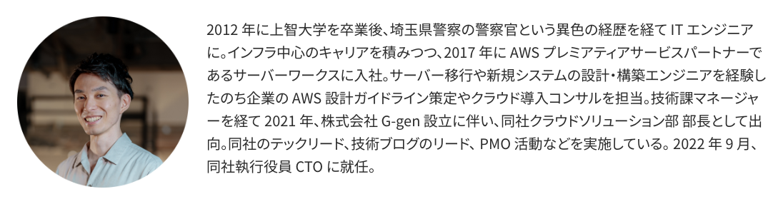 私の役割は3つです。1つ目は、お客様の組織・企業に IT における成功をもたらすこと。これはサーバーワークスグループのビジョンである「クラウドで、世界を、もっと、はたらきやすく」に基づきます。2つ目は、G-gen のエンジニアを全員 IT のプロにすること。Google Cloud のプロではなく、クラウドのプロでもなく、 IT のプロであってこそ、お客様の IT の成功に寄与できます。3つ目は Google Cloud の楽しさと便利さを世の中に知ってもらうこと。Google Cloud の優れたアジリティ、使いやすさ、おもしろさは他のクラウドを知っているからこそよく分かります。私たちの行動が、世の中を少しでも変えられると信じています。