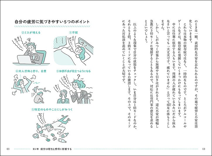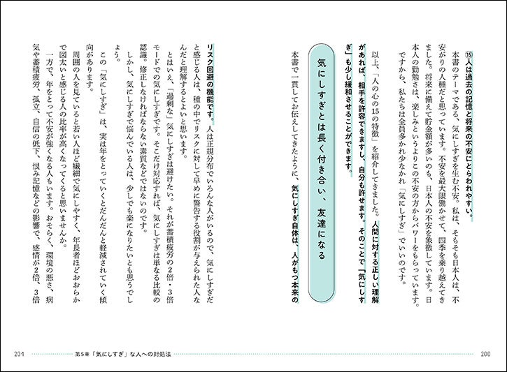 本書では、人間の感情としての「不安」の状態と「疲労」の関係を理解し、感情へのアプローチを学ぶことで、「気にしすぎ」に対する的確な具体的対処法を理解できる構成になっています。さらに身近な人が気にし過ぎで困っているという人へのヒントも紹介。