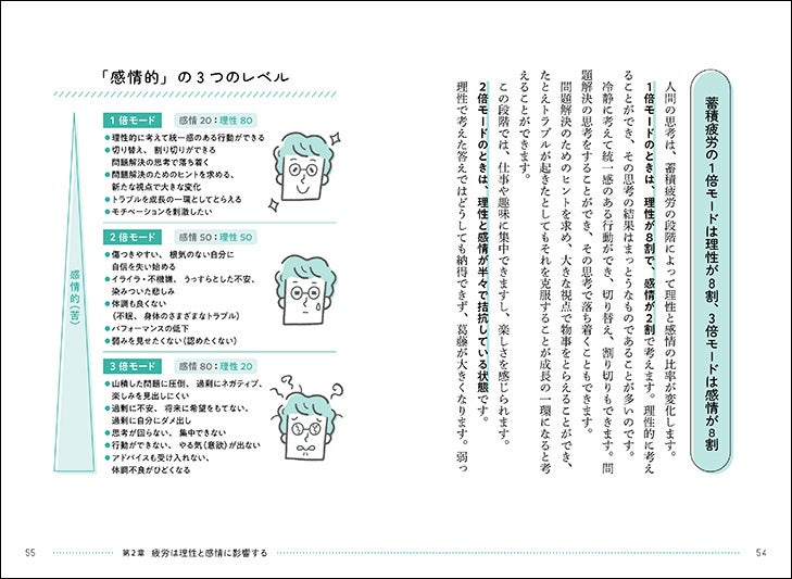 理性と感情の2つのコンピュータ/感情の仮想現実、3つの特徴/不安は行動をすくませる/理性で抑え込めるのは小さな不安だけ/蓄積疲労の3段階/蓄積疲労の1倍モードは理性が8割、3倍モードは感情が8割