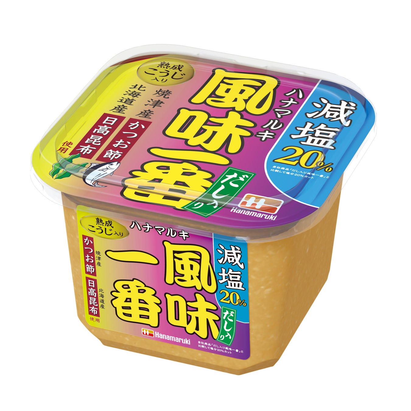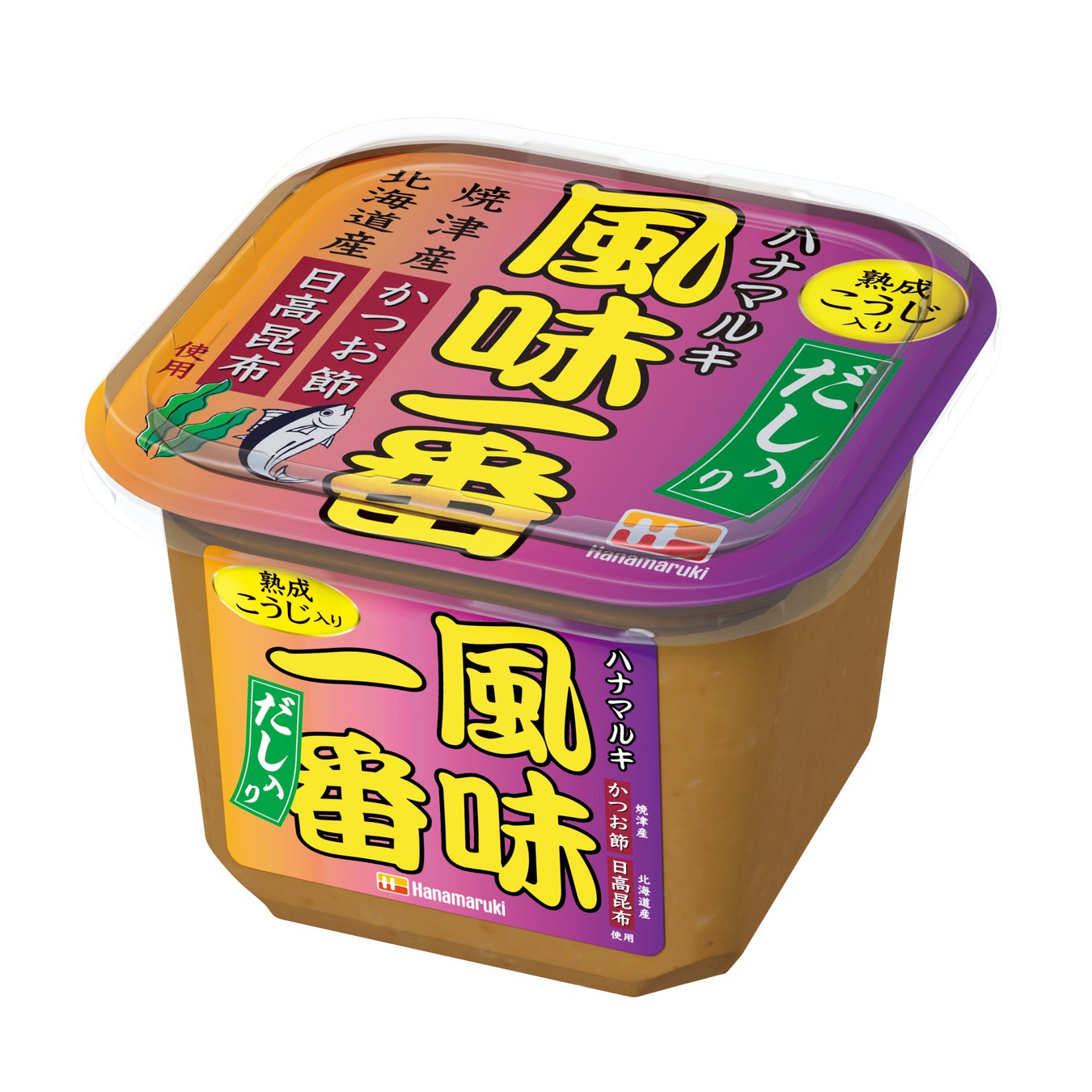 「風味一番」は1993年 に『 みそもだしも風味が一番! 』 のキャッチ コピーで発売を開始しました。焼津産鰹節と北海道産日高昆布をふんだんに使用し、風味豊かな味わいが特徴の当社を代表するだし入りみその一つです。色鮮やかなパッケージが特徴で、発売以来幅広い世代の方から愛されてきました。