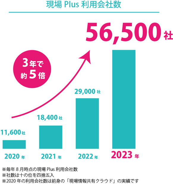 「現場Plus」は住宅・建設会社を中心に5万社以上が利用する施工管理アプリです。
