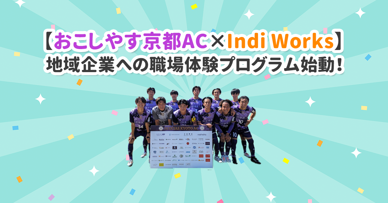 中小企業に特化した採用・求人サービス「採用できるくん®️」を提供する、株式会社Indi Works(本社:京都府京都市、代表取締役:濱田 悠佑)は、京都から2つ目のJリーグ入りを目指すサッカークラブ「おこしやす京都AC」と連携し、中小企業の新たな認知・採用戦略として「職場体験プログラム」を開始しました。本プログラムでは、プロサッカー選手が地域企業で職場体験を行い、企業の認知度向上と採用活動の活性化を支援いたします。