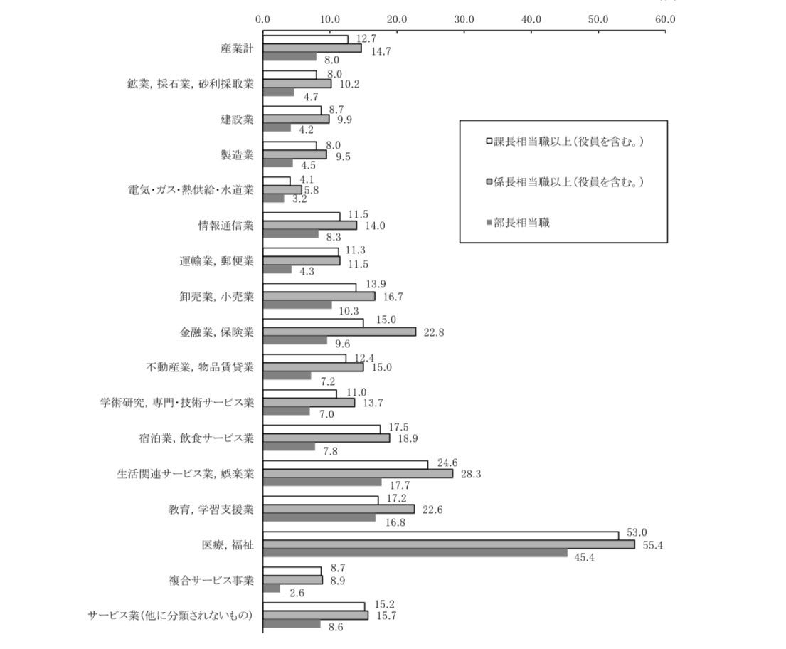 ■サービス業における女性管理職の割合は15.2%、BODは22.5%