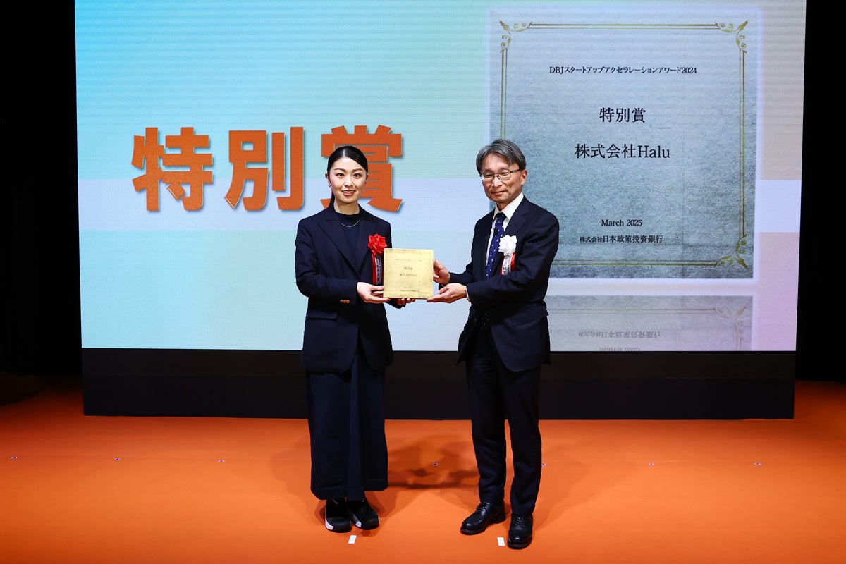 株式会社Halu(「ハル」、本社:京都府京都市、代表取締役:松本友理、以下「Halu」)は、この度、株式会社日本政策投資銀行(DBJ)が主催する「DBJスタートアップアクセラレーションアワード2024」において、特別賞を受賞しましたことをお知らせいたします。