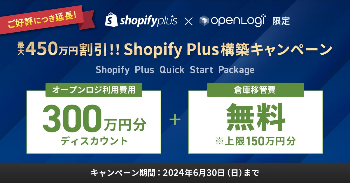オープンロジは、現在、Shopify Japan株式会社(本社:東京都渋谷区、カントリーマネージャー:太原 真、以下:Shopify Japan)と共同で実施しているキャンペーンについて、多くのお問い合わせを頂いていることを背景に、申込期間を6月末まで延長することを決定いたしました。