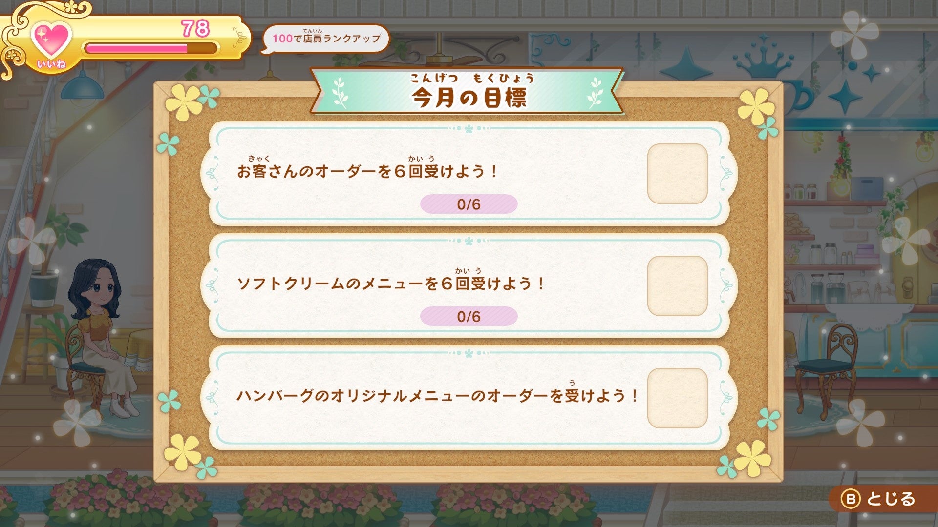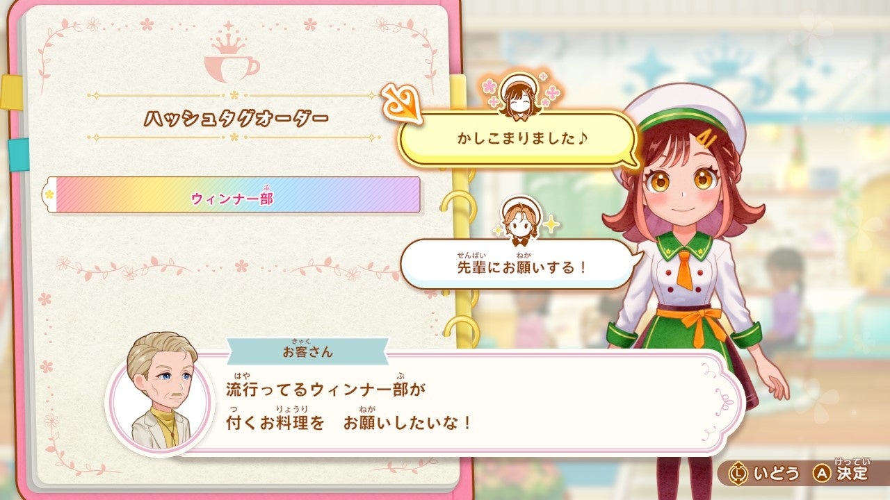 カフェの新人店員として、お客さんからのオーダーを受け、ミッションにチャレンジしながら、