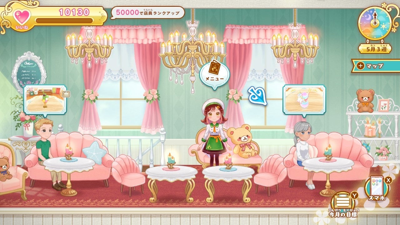 お店の知名度が上がると大人気のインフルエンサーが来店したり、主人公のファンが増えたりすることも。お店と一緒に主人公も有名になるサクセスストーリーを体験しよう!