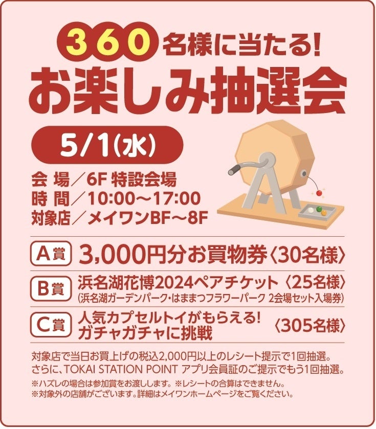 3,000円分お買物券などが360名様に当たる!お楽しみ抽選会