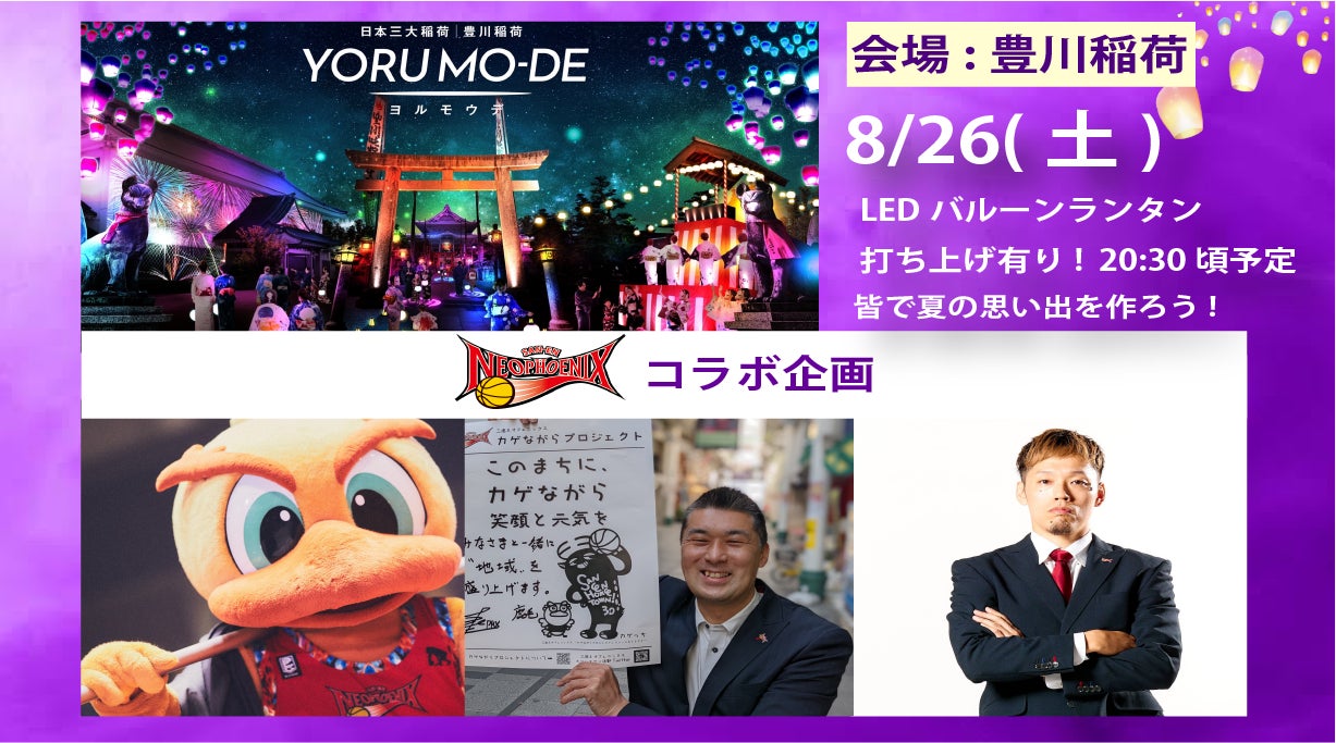 フィナーレとなる日本三大稲荷・豊川稲荷 YORU MO-DE(ヨルモウデ)✖「ODORI MO-DE(オドリモウデ)」スペシャルナイト前に、多数のコラボ企画を予定。