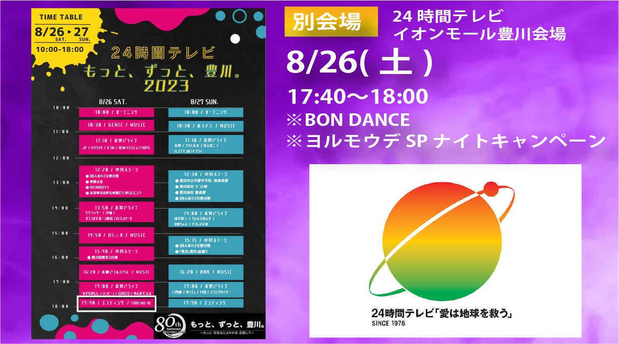 また、8月26日には地元プロパスケットチームとのコラボや、24時間テレビ イオンモール豊川会場コラボなど、本企画終盤になるにつれて、話題や賑わいを創出してまいります。