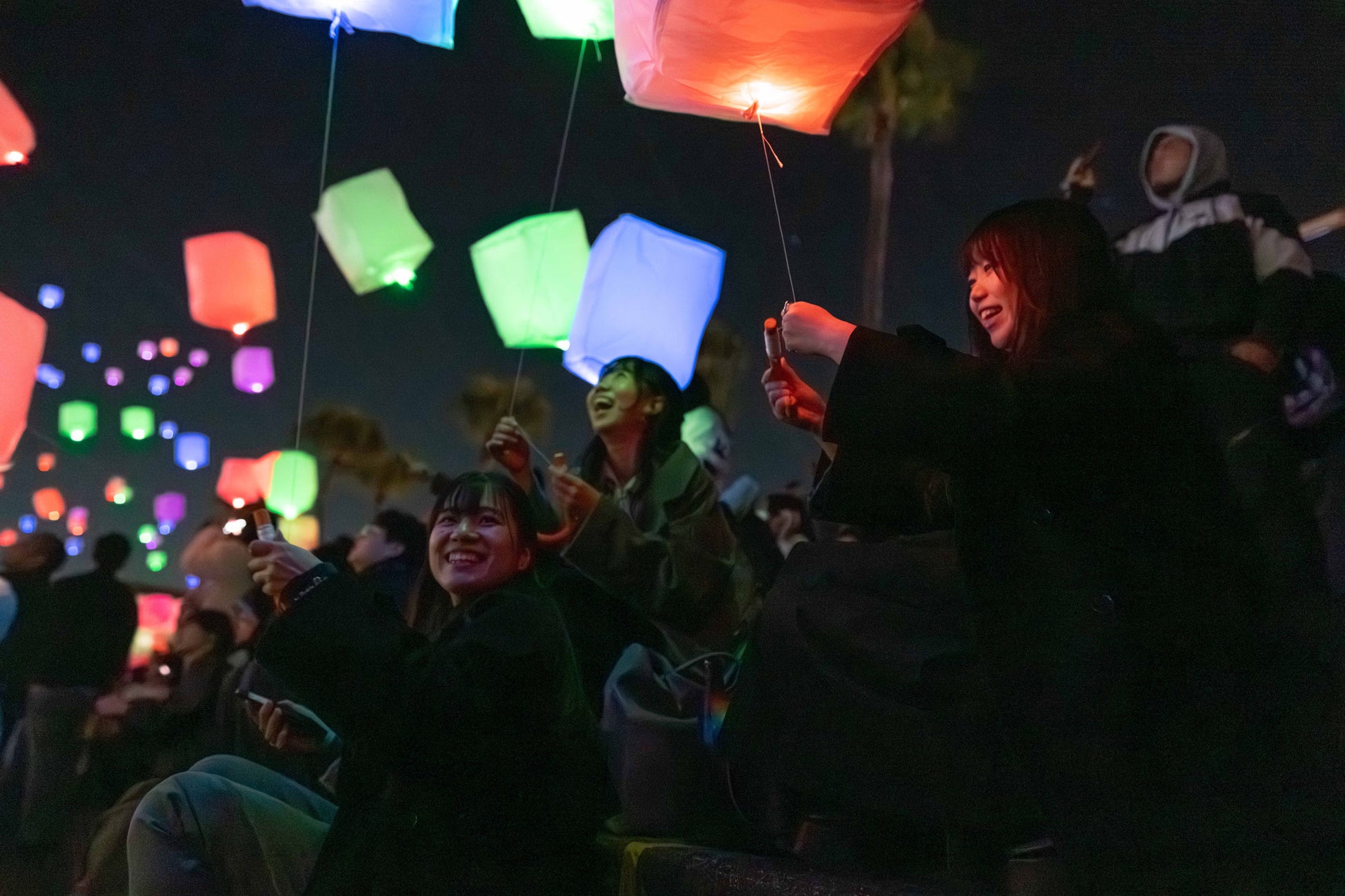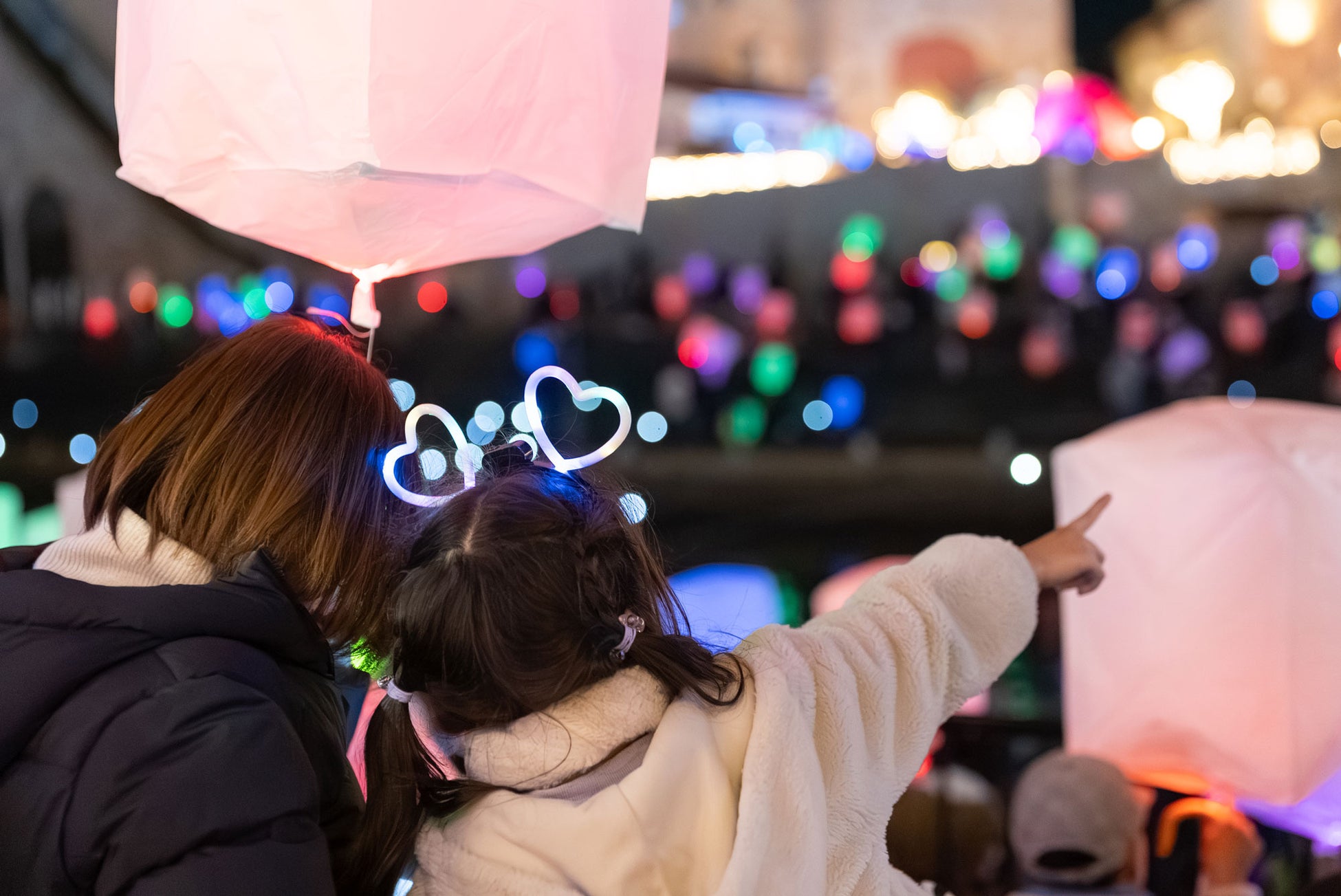 フェスタ・ルーチェの今年のテーマはWinter Light Magic 〜心奪われる、冬の光のWOW!!な夜〜。その目玉企画として、夜空を埋め尽くす700個の色鮮やかなランタンと、和歌山最大500機のドローンショーを組み合わせた、日本で初めて※の壮大な演出を実施しました。この幻想的な光景は多くの来場者を魅了し、2023年12月9日に記録したフェスタ・ルーチェの1日の入場者数6,729人から更新し、6,932人とイベント開催以来最高となりました。また、人気Youtuberグループ「Lazy Lie Crazy(レイクレ)」を公式アンバサダーとしてゲストに迎えた11月1日(土)の点灯式から、例年以上の話題を呼び、月間来場者数も過去最高となりました。