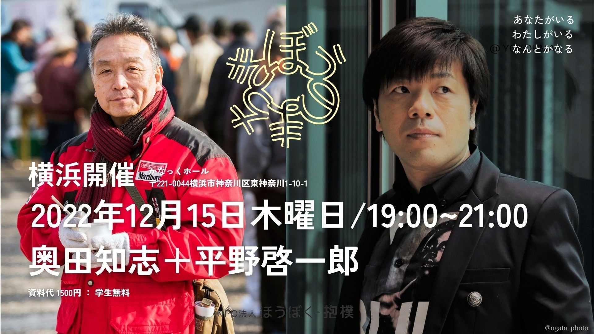 【12 /15(木)横浜開催】認定NPO法人抱樸 希望のまちプロジェクトの進捗報告イベントを横浜で開催。ゲストに小説家の平野啓一郎氏。