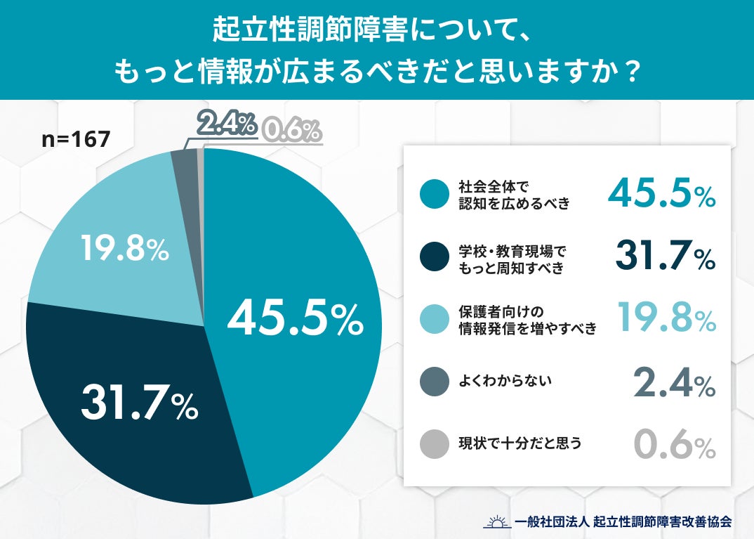 → 「朝起きられない」という代表的な症状は浸透していますが、それが「自律神経の機能不全」という身体疾患であることや、医療機関での治療が可能であることへの認識はまだ十分とは言えません。
