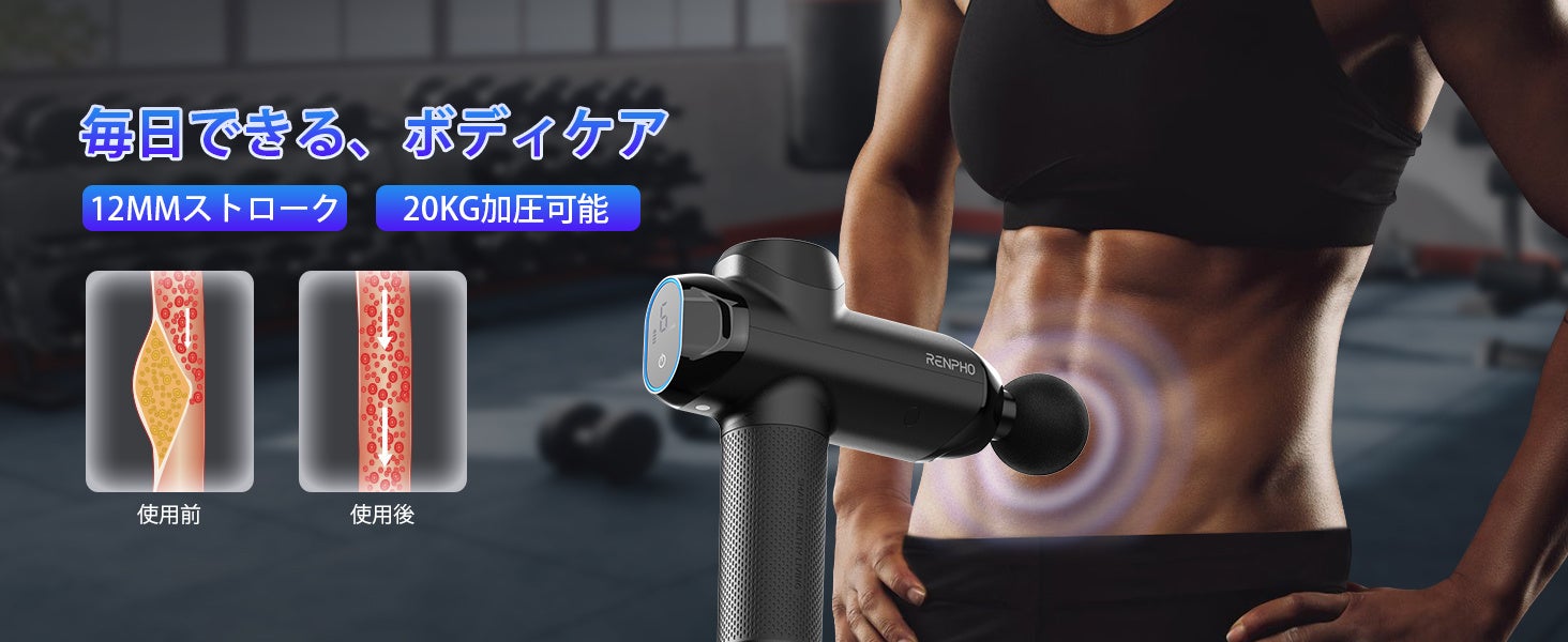 約20kgの反発力にも耐えられる、最大出力100Wブラシレスモーターと、最大12MMのヘッドストロークで、しっかりと筋肉にアプローチできます。ランニングやトレーニングなど、日頃から運動する習慣がある方に最適です。