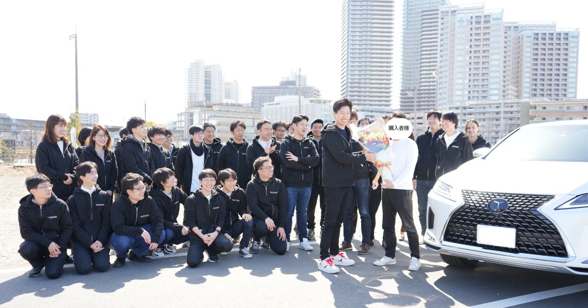 「THE FIRST TURING CAR」はレクサスRX450hをベース車両として、チューリングが自社開発したAI自動運転システムと、オリジナルエンブレムが搭載されており、チューリングとして初めてエンドユーザー向けに販売する製品です。2023年1月20日に販売を発表してから、多数の購入問い合わせをいただいており、本日その中からご成約いただいたお客様向けの納車式を実施させていただきました。