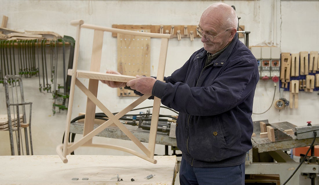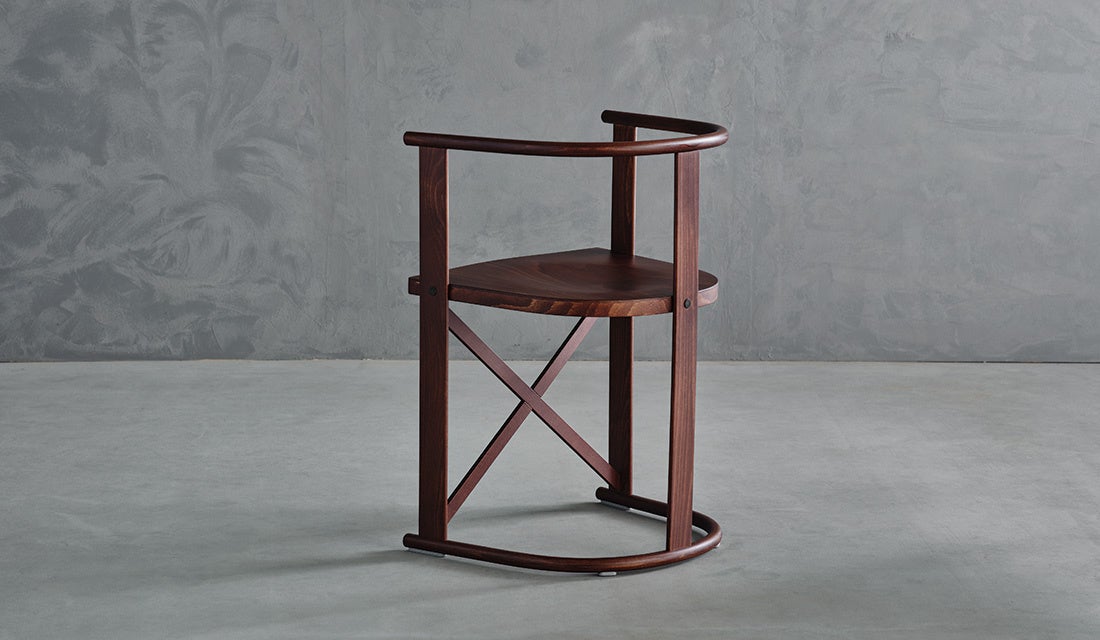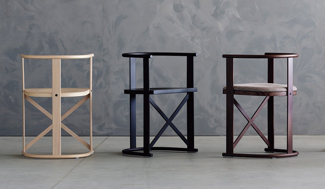 座下に建築の工法を取り入れ、クロスしたデザインが見事に成立しており、堅固さと軽さの完璧なバランスが絶妙なチェアとなっています。コントラクトユースでもお使い頂けるほど充分な強度を持ち合わせております。イタリアの強度試験基準機関であるCATASの設立メンバーで、家具職人でもあるマリオ・カバスだからこそできた木のポテンシャルを最大限に引き出したデザインのチェアです。