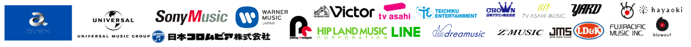 ユニバーサルミュージックジャパン、ソニーミュージック、エイベックス、ビクターエンターテイメント、ポニーキャニオン、日本コロムビア、テレビ朝日ミュージック、フジパシフィックミュージックetc(敬称略)