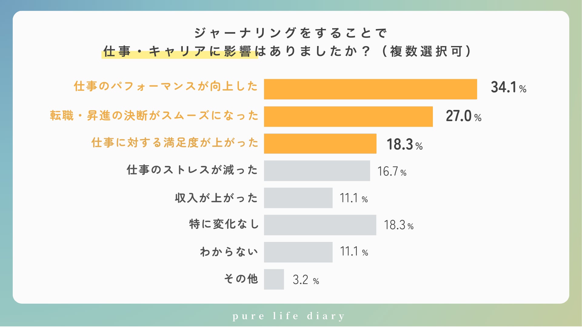 ジャーナリング実践者の仕事への影響1位は「パフォーマンス向上」(34.1%)。