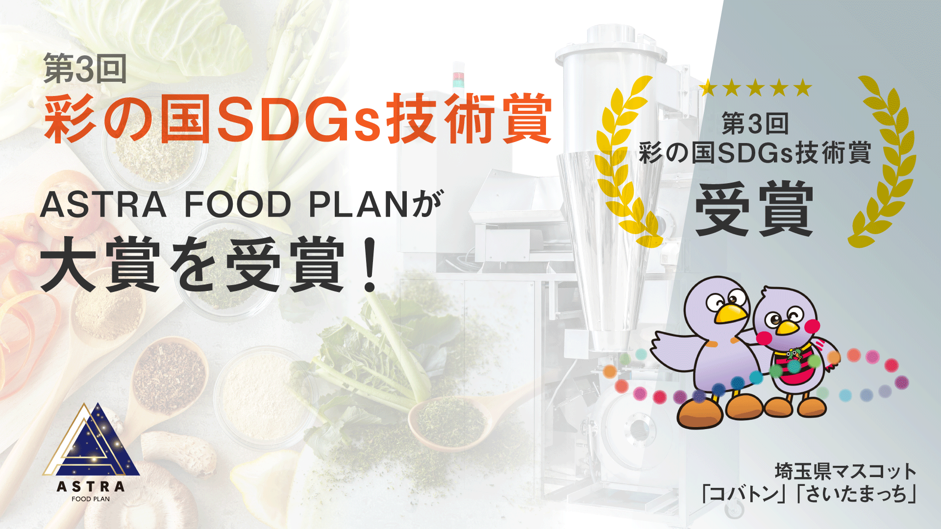 かくれフードロスに向き合うASTRA FOOD PLAN、埼玉県主催の第3回「彩の国SDGs技術賞」で大賞を受賞