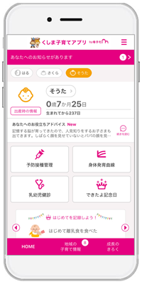 宮崎県串間市に採用された『くしま子育てアプリ』は、スマートフォン・タブレット端末・PCに対応したサービスで、妊産婦と子どもの健康データの記録・管理や予防接種のスケジュール管理、出産・育児に関するアドバイスの提供、離れた地域に住む祖父母など家族との共有機能や、市が配信する地域の情報をお知らせするなど、育児や仕事に忙しい母親や父親を助けてくれる便利な機能が充実しています。