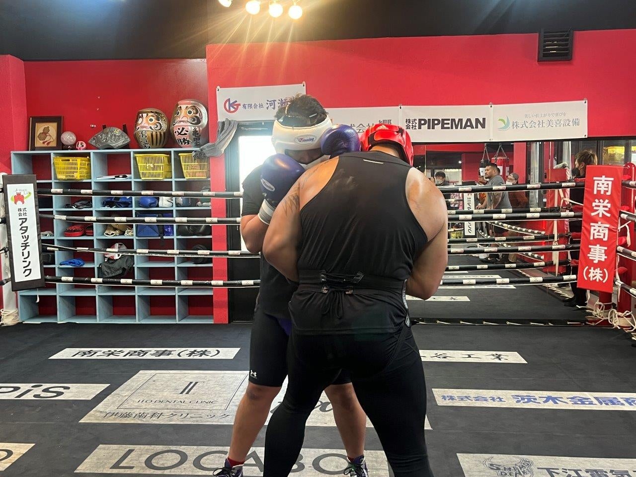 この日の会見後には、オーストラリアから招聘したパートナーとのスパーリングも公開した但馬。ヘビー級同士の迫力あるパンチの応酬が繰り広げられ、白熱のスパーリングが展開された。今後は試合に向けた調整が急ピッチで進められていく。