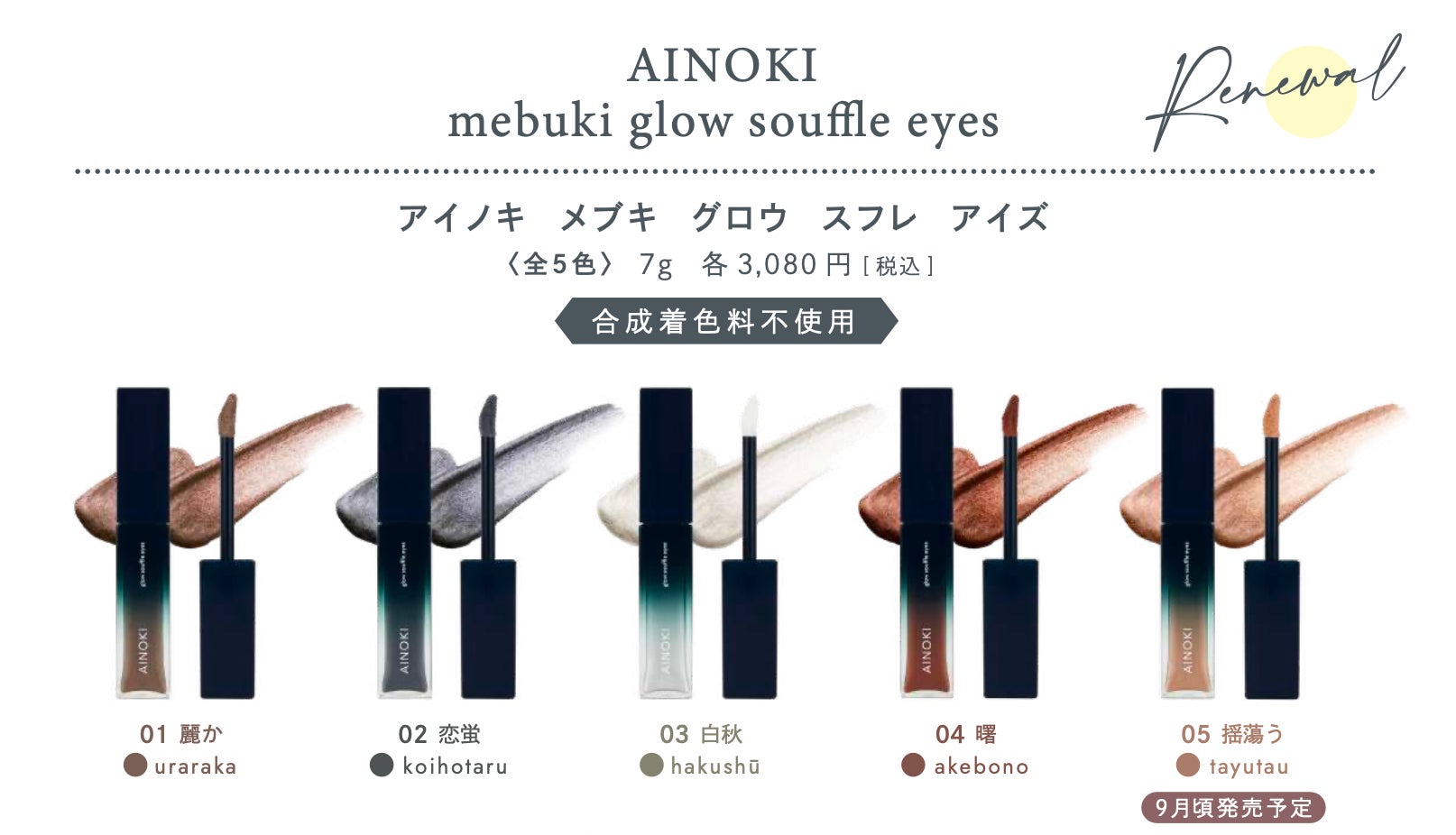 化粧品製造・販売をおこなうジャプロ株式会社(東京本社:東京都中央区日本橋小舟町8-6 H1O日本橋小舟町606)が展開する国産ヴィーガン、ナチュラルオーガニックコスメブランド「AINOKI (アイノキ)」より、リニューアルしたリキッドアイシャドウ「グロウスフレアイズ」全5色の販売を開始いたします。