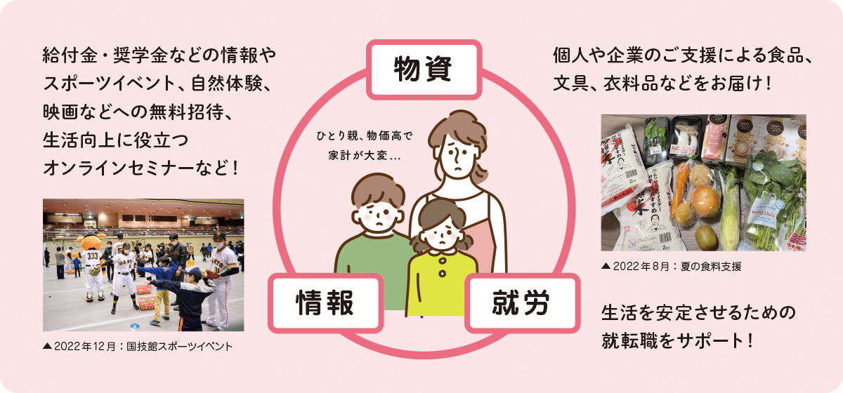 生活に役立つ物資・情報・就労支援で子育て家庭を応援!