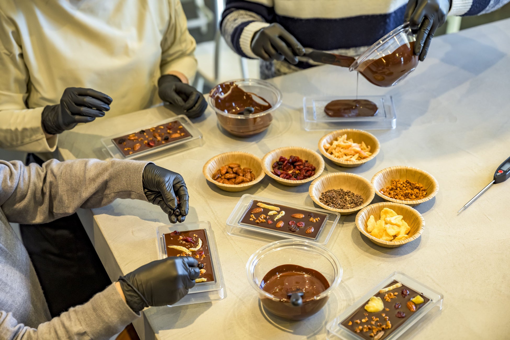 参加者は、自分の好きなチョコレートや具材を選び、世界に一つだけのオリジナル「Knock on Chocolate」を作ることができるイベントです。「Knock on Chocolate」は、チョコレートを木槌で叩くことで、幸運や願いが叶う“Knock on wood”というおまじないに着想を得た、当店のギフト商品です。贈る相手の幸せや特別な瞬間を祝う特別なチョコレートを、ご自身の手で作ってみてはいかがでしょうか。