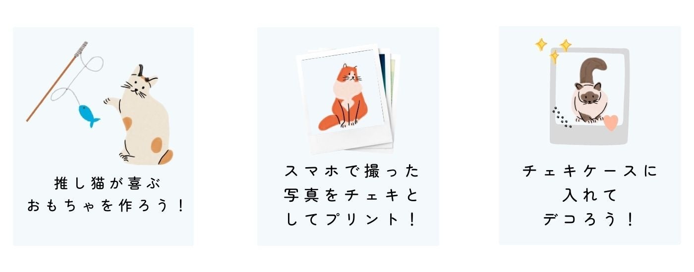本イベントでは、自分の推し猫の写真を撮影、チェキとしてプリントしたものをデコレーションする体験や、