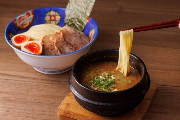 つるもち食感のつけ麺は、数種類の厳選小麦を絶妙なバランスで配合したコシ、のど越し、小麦の薫りを感じる特注中太麺を使用しております。最後まであつあつを楽しめるように石鍋でご提供します。