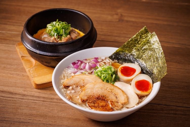 じっくりと炊き出した豚と丸鶏のダブルスープに、煮干し、さば節、カツオ節を合わせ、旨味を最大限に引き出した至極のスープ!