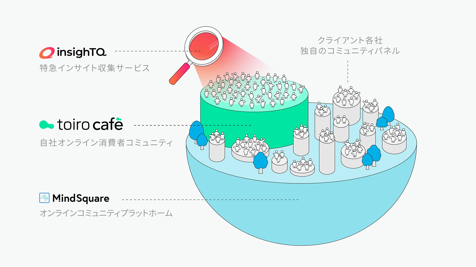 これらの課題を解決するため、10INC.は、大規模かつ多面的なデータ収集を可能にする調査手法「MROC(Market Research Online Community)」に着目。海外で広く活用されているこの手法を、日本企業のニーズに合わせて手軽に実施できる形にするべく、これまで専用プラットフォーム「Mind Square™」の開発や、自社運営のオンライン消費者コミュニティ「toiro cafe」の構築を進め、MROCの知見を深めてきました。これらの取り組みをもとに、10INC.は「早い」「安い」「深い」「質が高い」の4つを兼ね備えたリサーチソリューション「insighTQ」を開発。このサービスにより、日本の企業が抱えるマーケティングリサーチの課題を解消し、消費者理解をさらに深める支援が可能になりました。