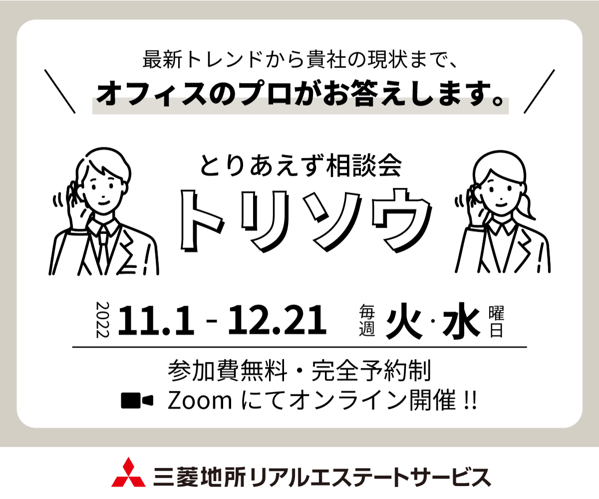 三菱地所リアルのオフィス見直しサポート 『トリソウ(とりあえず相談会)』開催!
