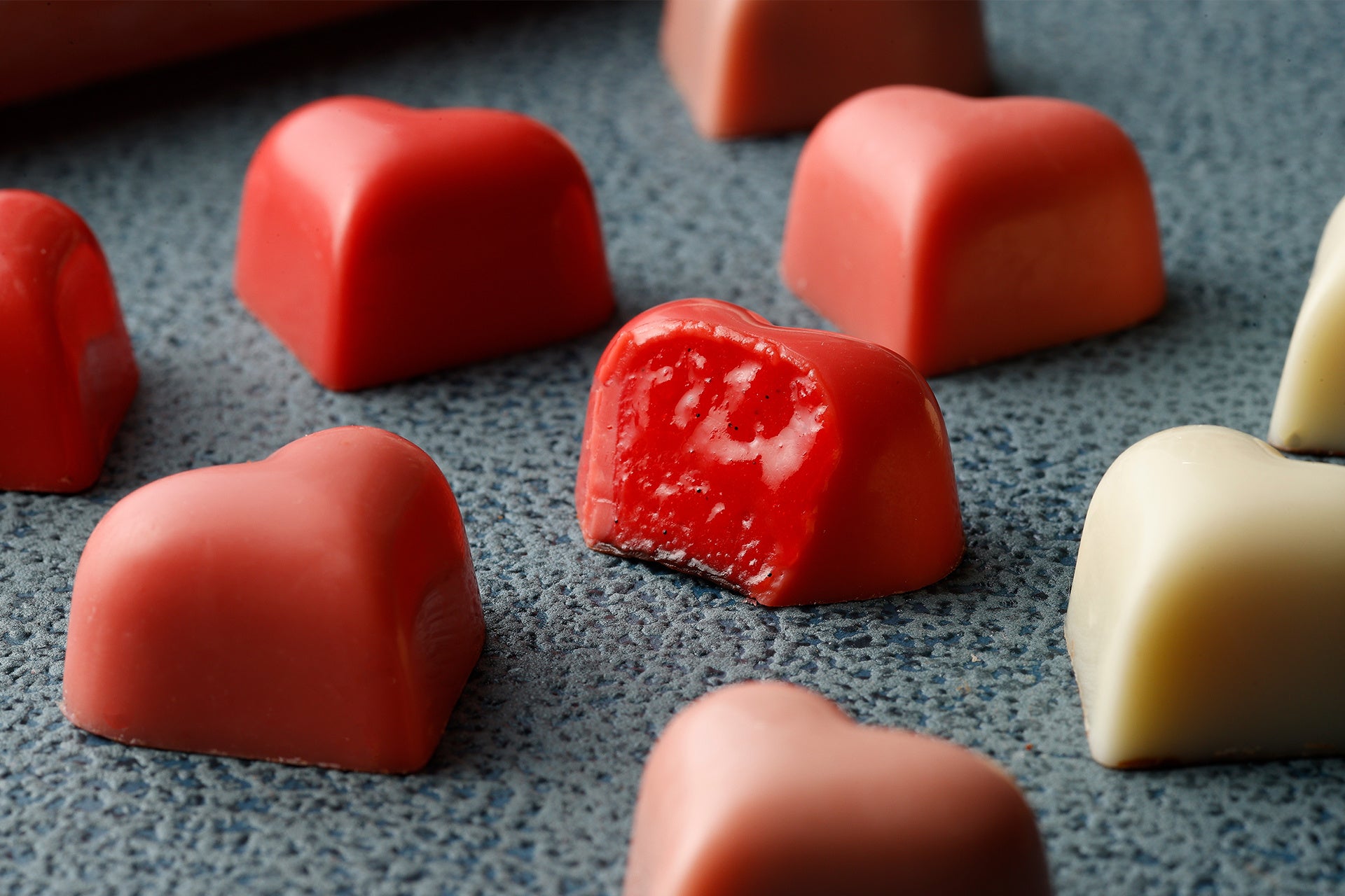 バレンタインデーにふさわしいハート形のショコラで、グラデーションカラーの4つのフレーバーを詰め合わせました。