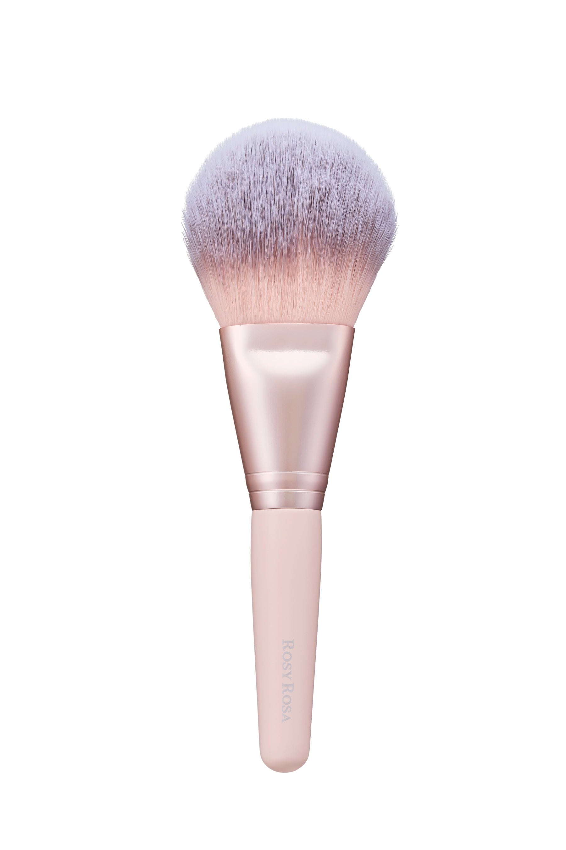骨格に沿い、広い面も細かい部分も塗りやすい、ロージーローザ独自の「ファン(うちわ)型」です。たっぷりの毛量が肌にやさしくフィットし、毛先の極細加工で肌当たりはとてもなめらか。