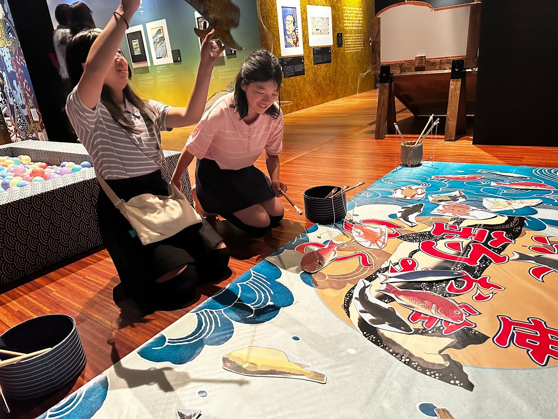 映像空間の合間には、江戸時代に実際に刷られた浮世絵や復刻版を展示し、それぞれに解説を添えています。 一部には小学校2年生以上を対象とした、やさしい言葉での解説もあり、親子でも安心して学びながら楽しめます。