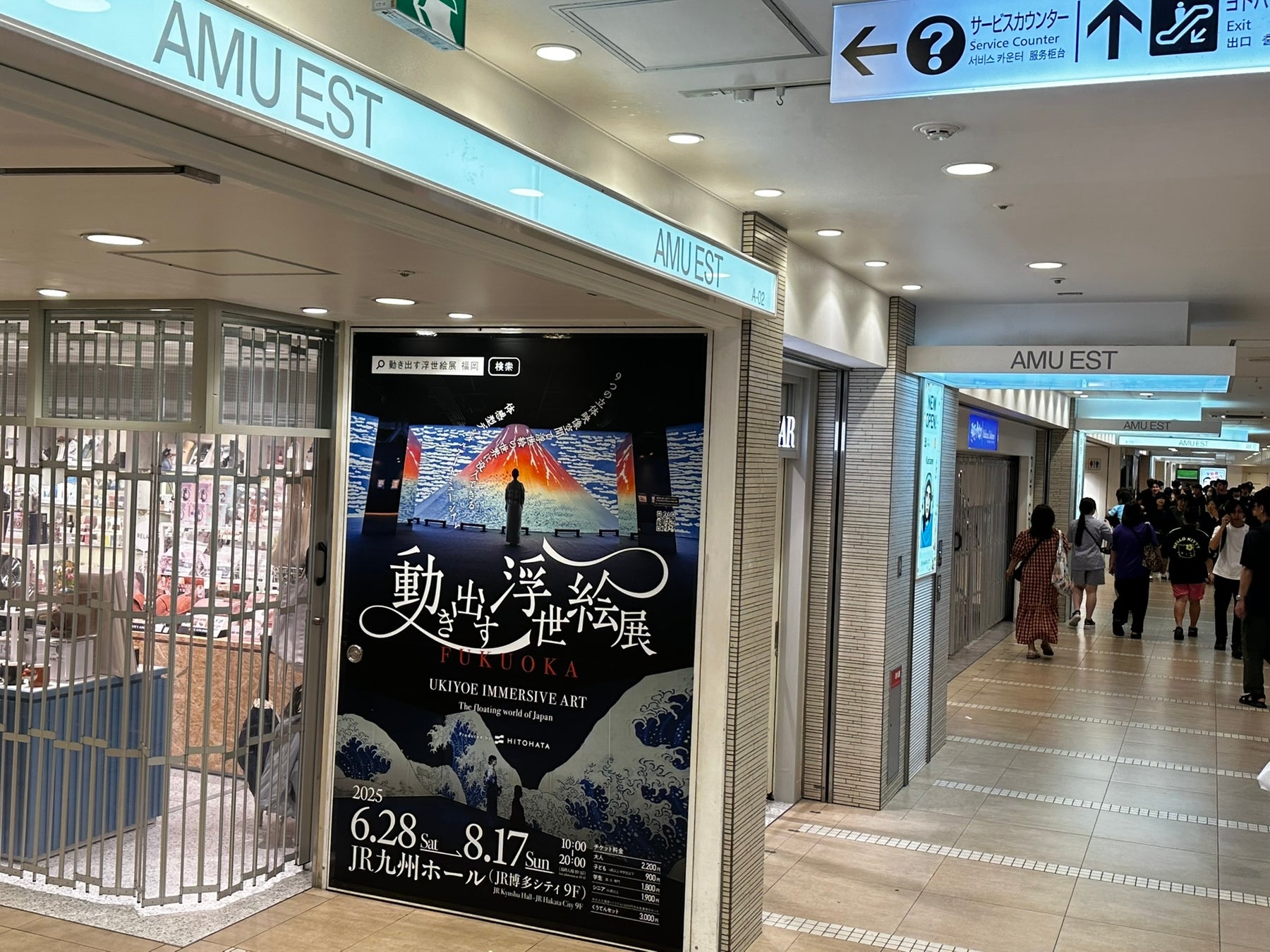 JR博多シティ9階・JR九州ホールにて開幕。 世界的な浮世絵師の作品 300点以上をもとに、3DCGやプロジェクションマッピングを駆使して浮世絵の世界に没入できる体感型デジタルアートミュージアムです。