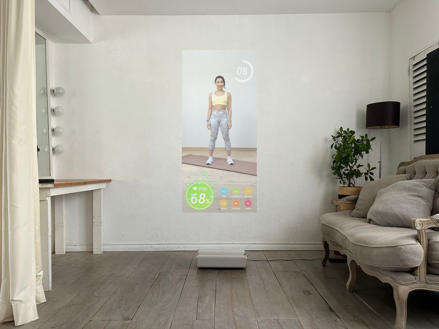 Smart 5minの開発者である程は、照明一体型プロジェクターpopIn Aladdin (現Aladdin X) の開発者と同じです。等身大のトレーナーを大画面に映し出し、まるで目の前にいるかのような臨場感のあるトレーニングが可能になります。